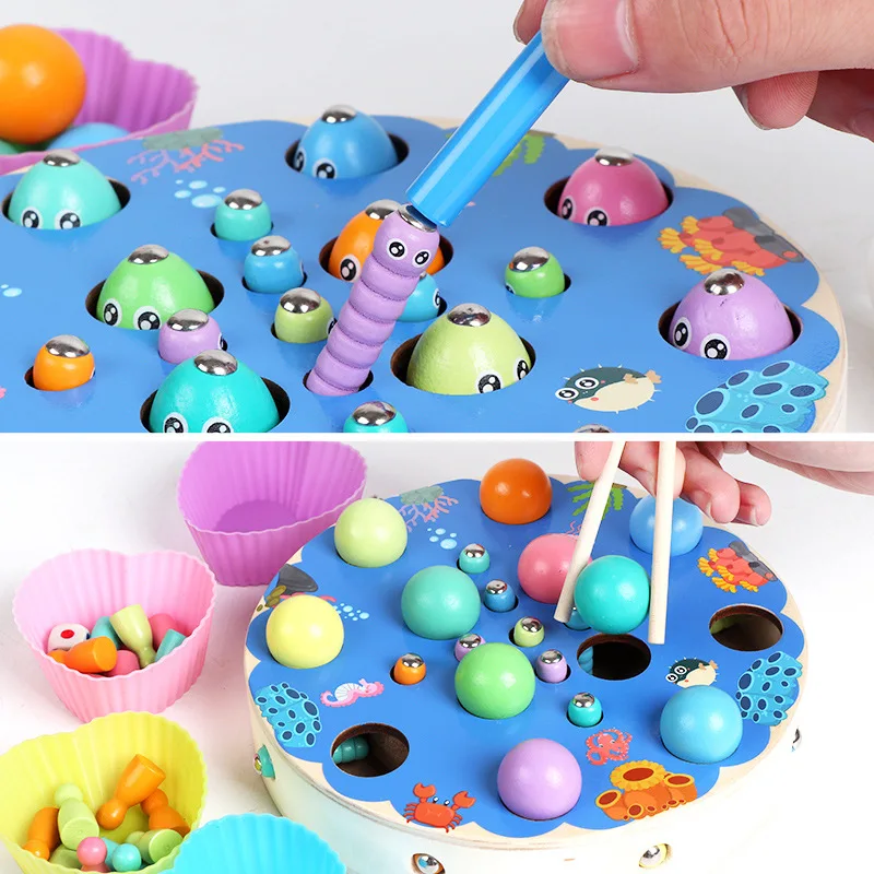 | 4 IN 1 Childrens Magnetic Fishing Flying Chess Clip Beads Game Learning Educational Funny Game Wooden Toys Gifts |