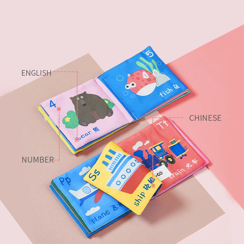 BabyGo 6 Pcs Baby Cloth Book Early Education Toy With Animals&Food Letter Number Soft Cloth Infant Development Toys Gifts