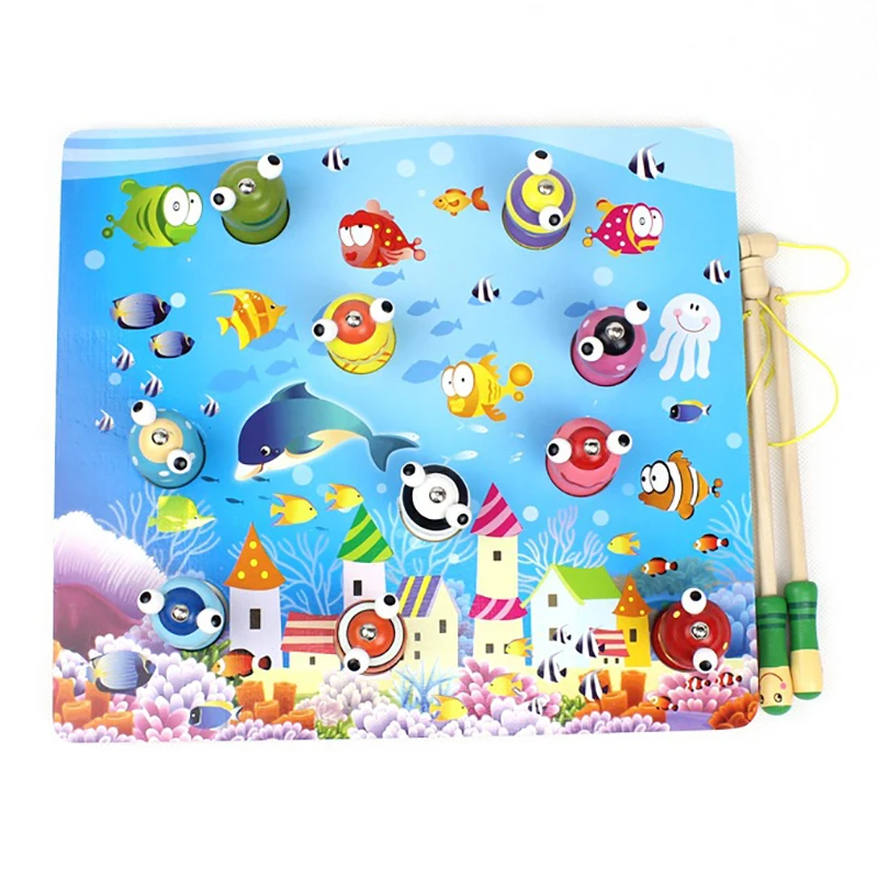 | Wood Colorful Fishing Game Kids Wooden Toys Magnetic Games Fishing Toy Kids 3D Fish Baby Kids Educational Toys Gifts |