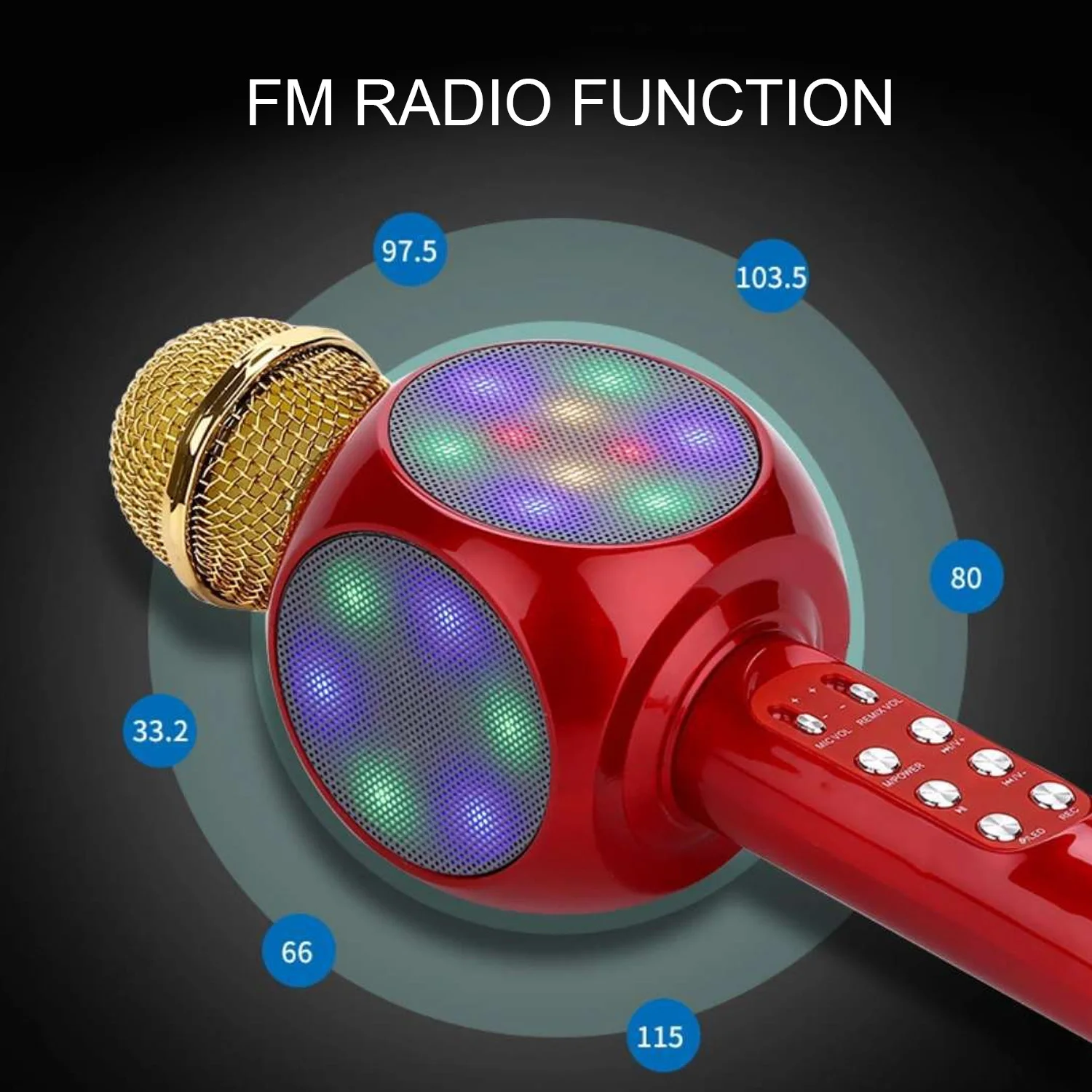 | Karaoke Microphone Portable Wireless Bluetooth Speaker Built-in LED Lights FM Radio Handheld Glowing Karaoke Mic Kids Music Toy |