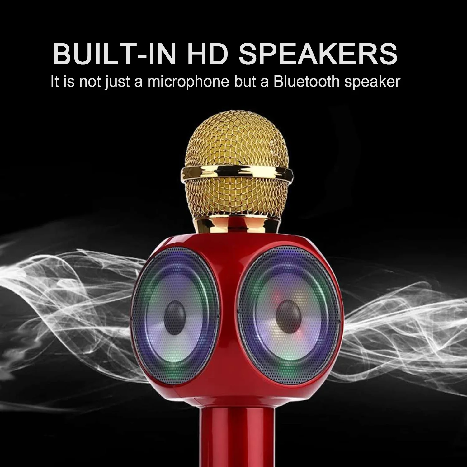 Karaoke Microphone Portable Wireless Bluetooth Speaker Built-in LED Lights FM Radio Handheld Glowing Karaoke Mic Kids Music Toy