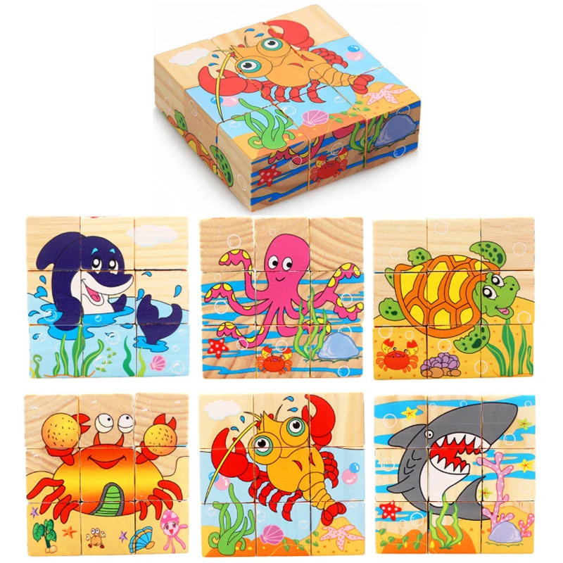 | Montessori Toys Educational Wooden Toys for Children Early Learning Kids 6 Sides Puzzles Game |