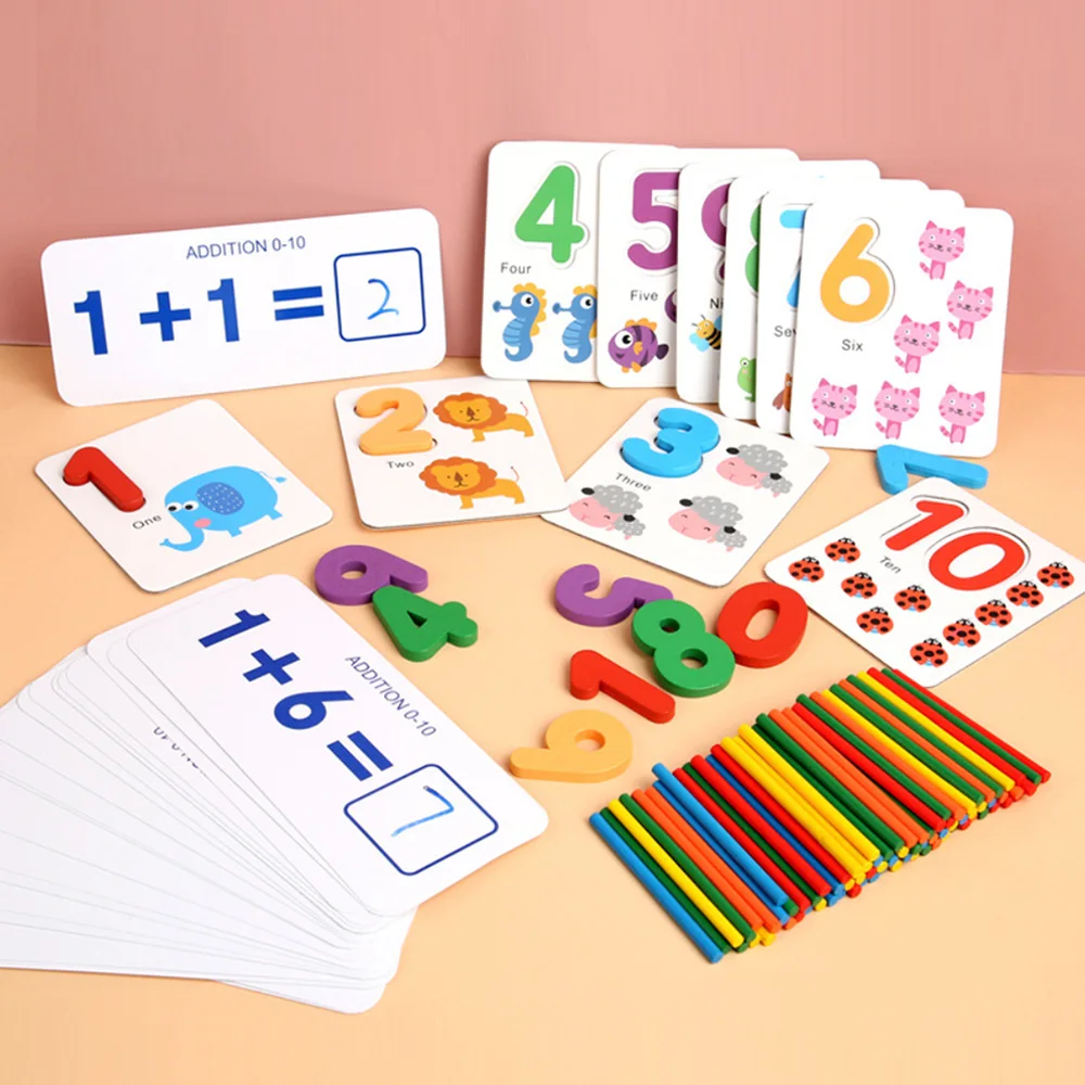 | 2020 New Early Digital Pairing Operation Toys Wooden Counting Stick Animal Puzzle Montessori Education Mathematics Math Toys |
