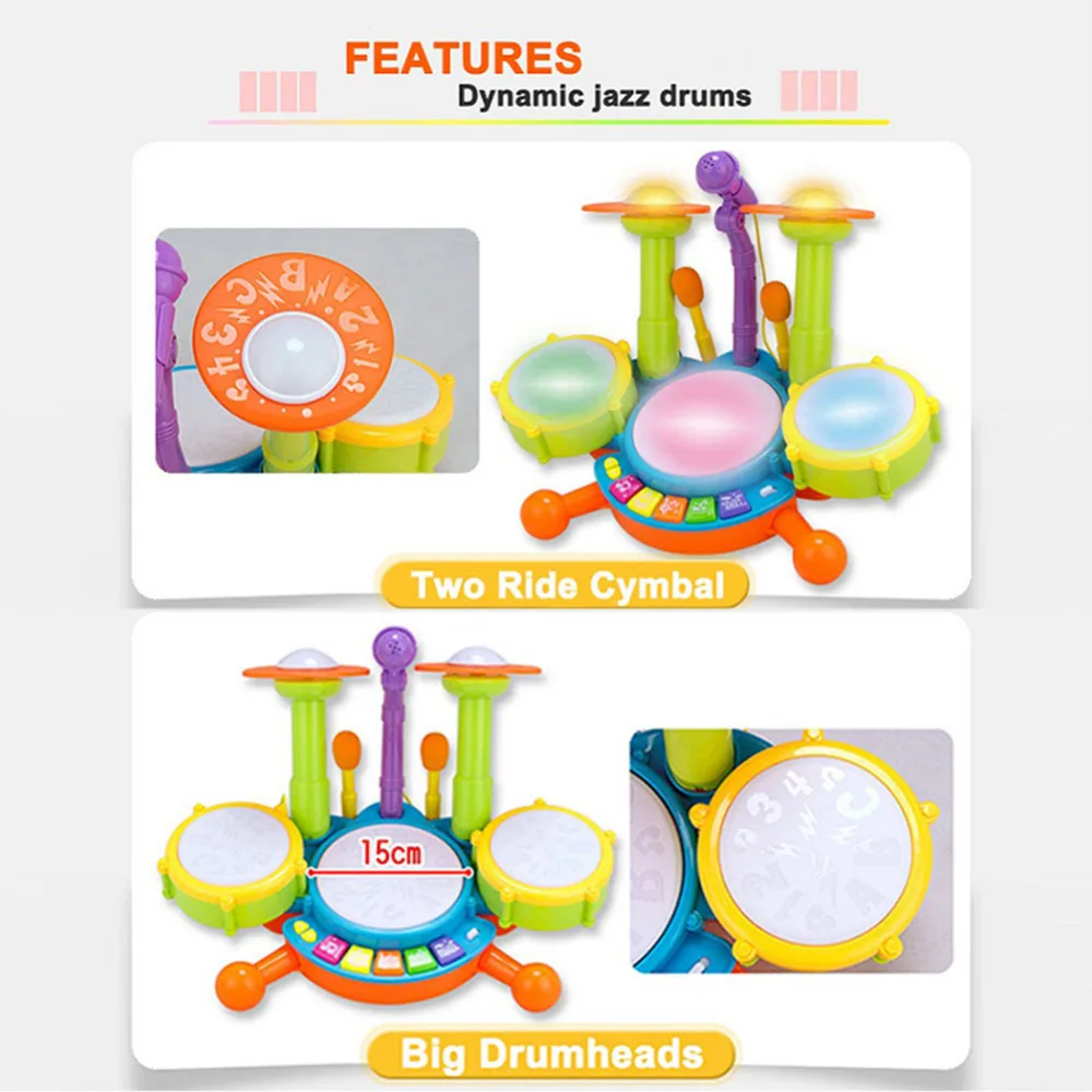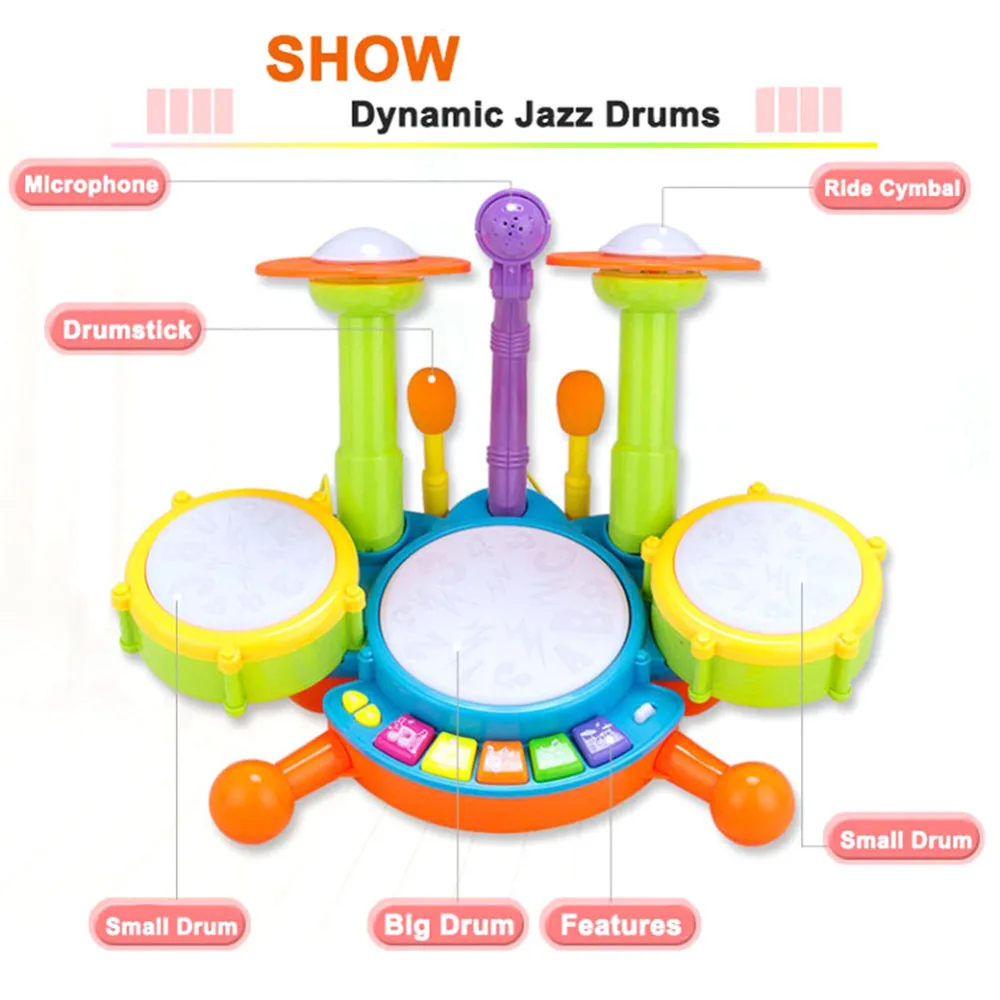 | Children Kids Musical Microphone Drum Kit Set Instrument Toy Puzzle Early Educational Toy Gifts for Boys Girls |