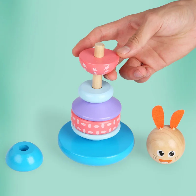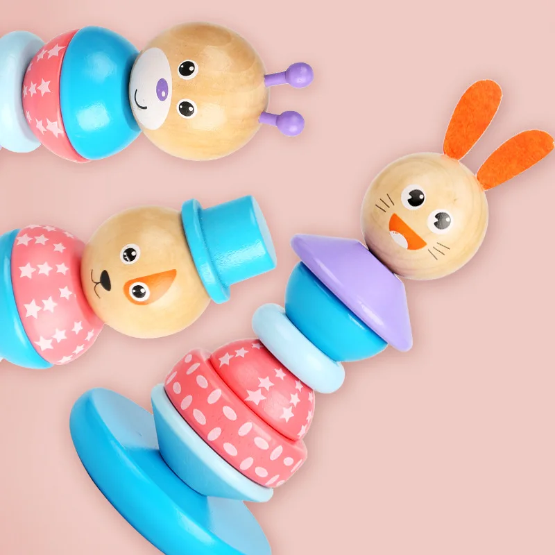 | Baby Animal Rainbow Tower Ring Wooden Stacking Tower Stack Up Blocks Children Education Toys Clown Tumbler Toys Gifts |