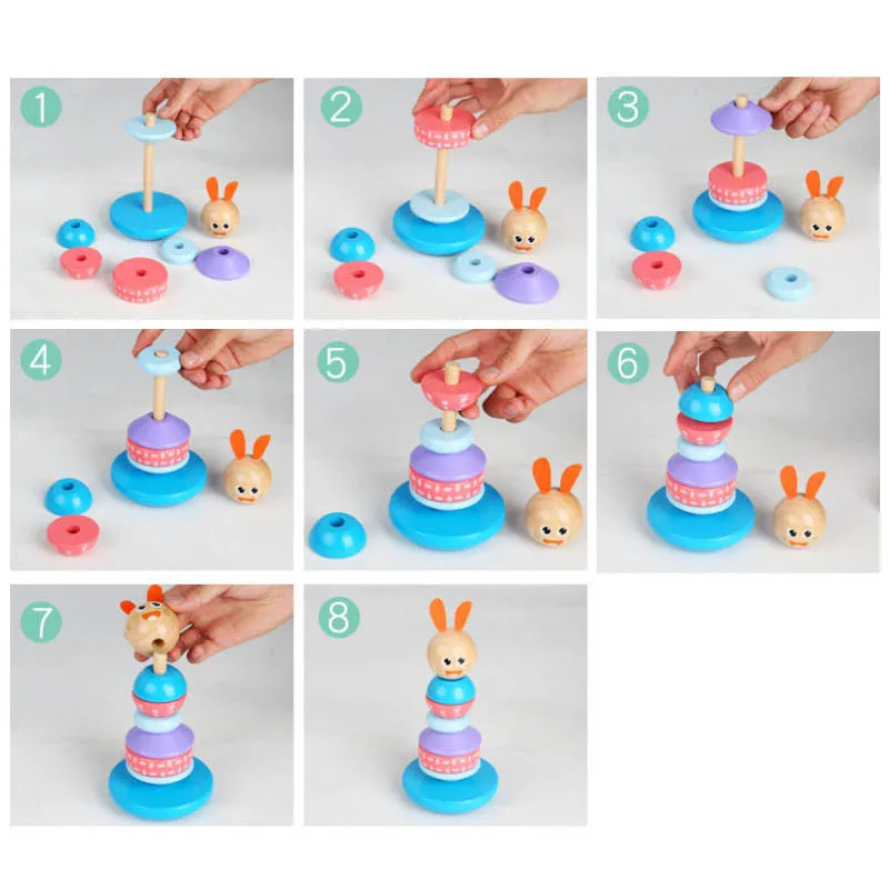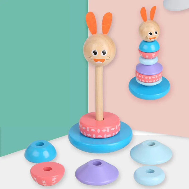 Best Price Comparison With Baby Animal Rainbow Tower Ring Wooden Stacking Tower Stack Up Blocks Children Education Toys Clown Tumbler Toys Gifts