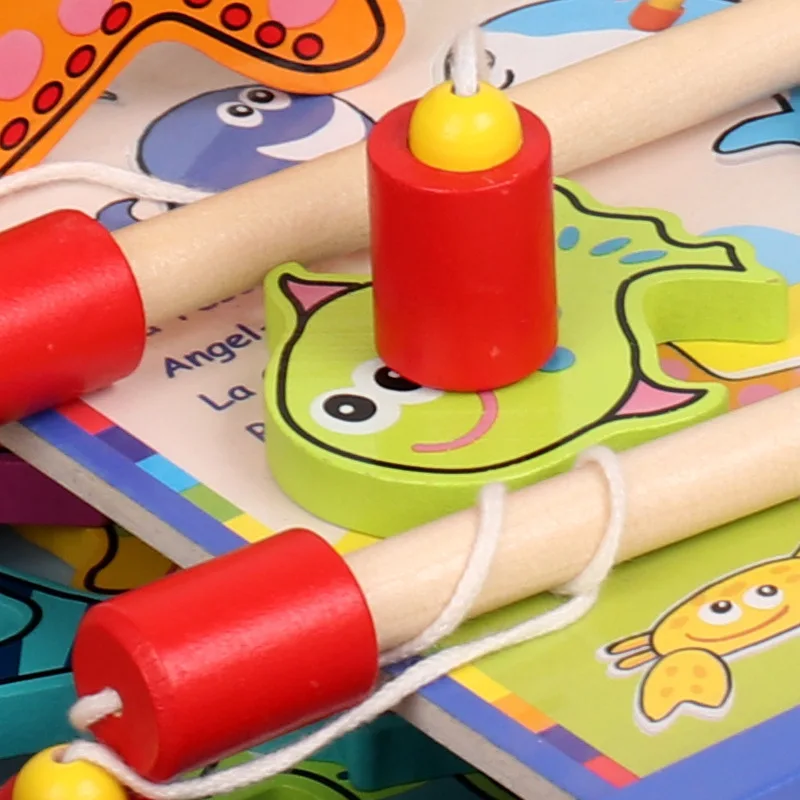 Wood Colorful Fishing Game Kids Wooden Toys Magnetic Games Fishing Toy Kids 3D Fish Baby Kids Educational Toys Gifts