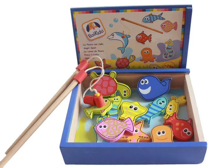 | Baby Fishing Game Educational Toys Wooden Magnetic Set Fish Game Cartoon Fishing Toy Child Birthday Gift Boy Girls |