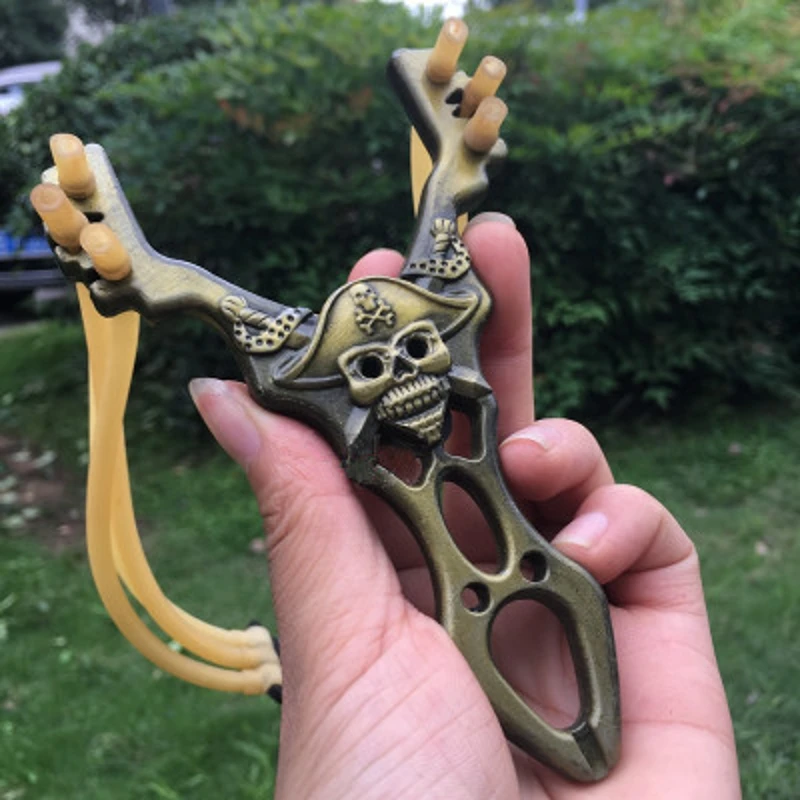 | Caribbean Pirates Skull Zinc Alloy Slingshot High Velocity Outdoor Hunting Slingshots Montessori Educational Toys for Children |