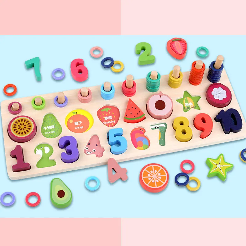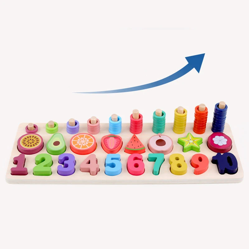 | Children Eduactional Toys Digital Shape Fruit Logarithmic Board Montessori Educational Wooden Toys Kids Wooden Math Toys Gifts |