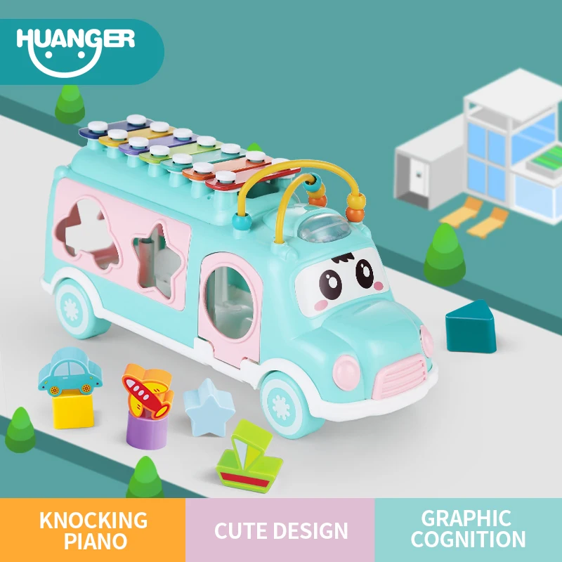 | Huanger New Music Bus Toys Instrument Knocking piano Lovely beads Blocks Sorting Learning Educational Baby Toys for Children |