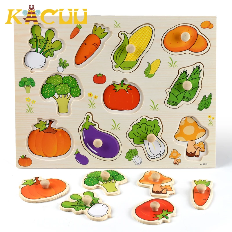 | Montessori Wooden Puzzles Hand Grab Boards Toys Tangram Jigsaw Baby Educational Toys Cartoon Vehicle Animals Fruits 3D Puzzles |