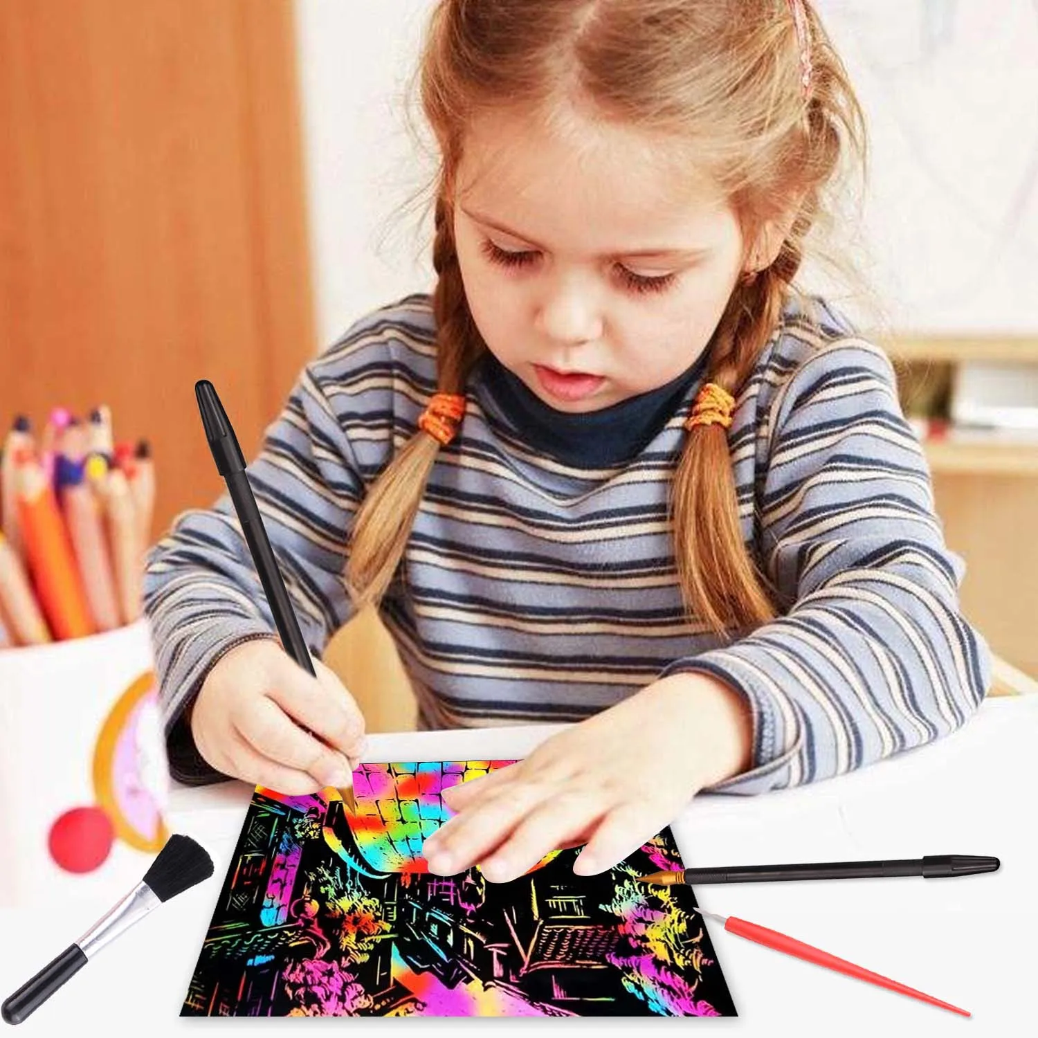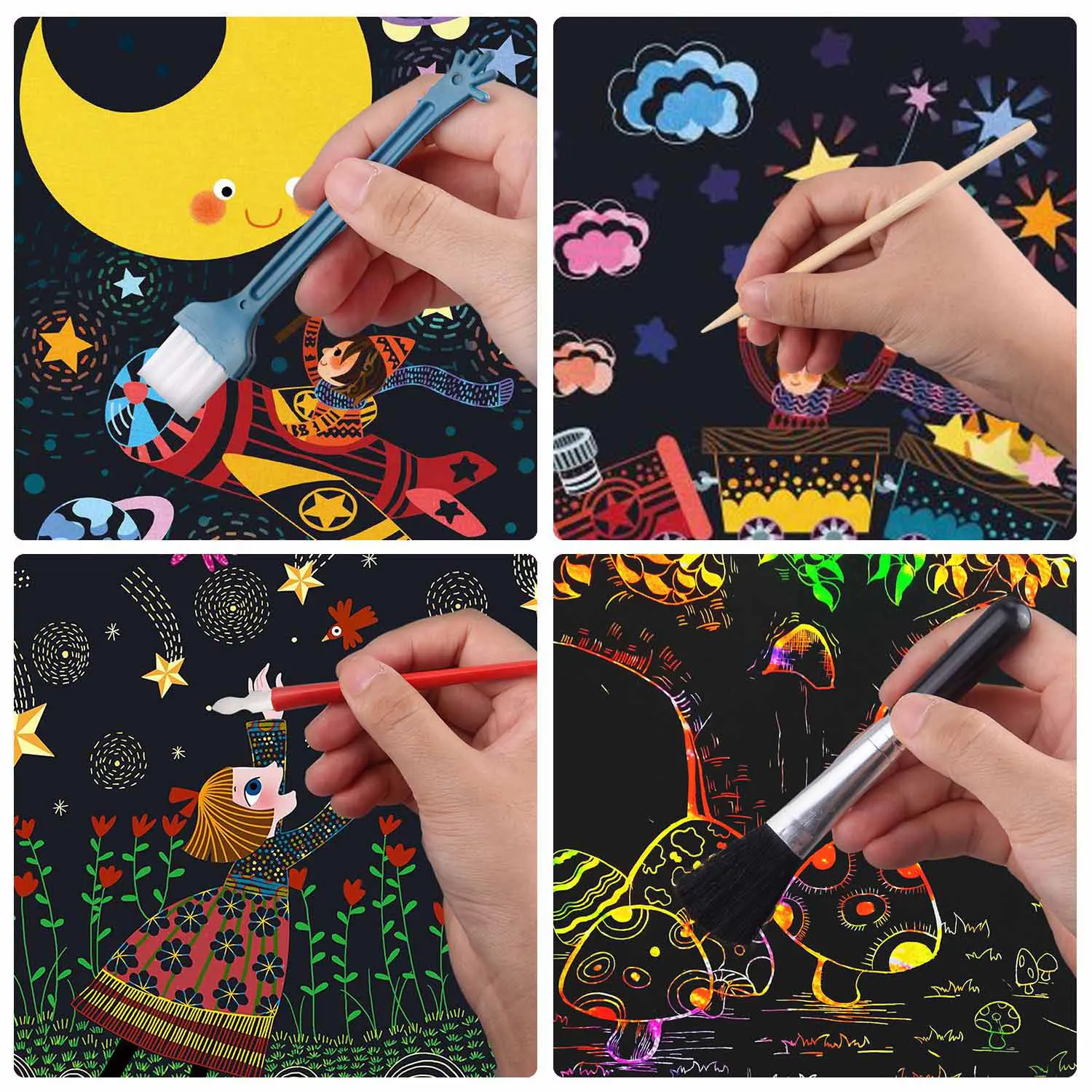 | 4Pcs Painting Drawing Scratch Set with Stick Scraper Pen Black Brush for Scratch Sketch Papers Boards Tools DIY Gift |