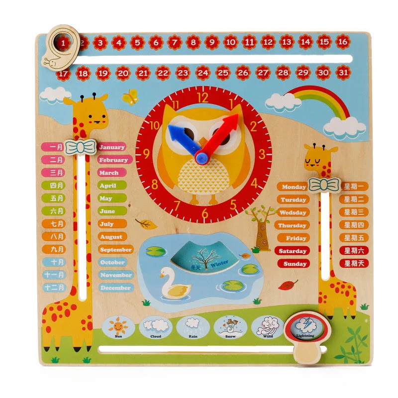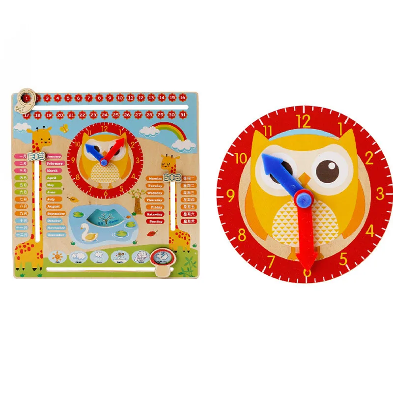 | Educational Wooden Clock Toy Baby Date Calendar Chart Preschool Learning Props Develop Kid Colors Recognition Clock Time |