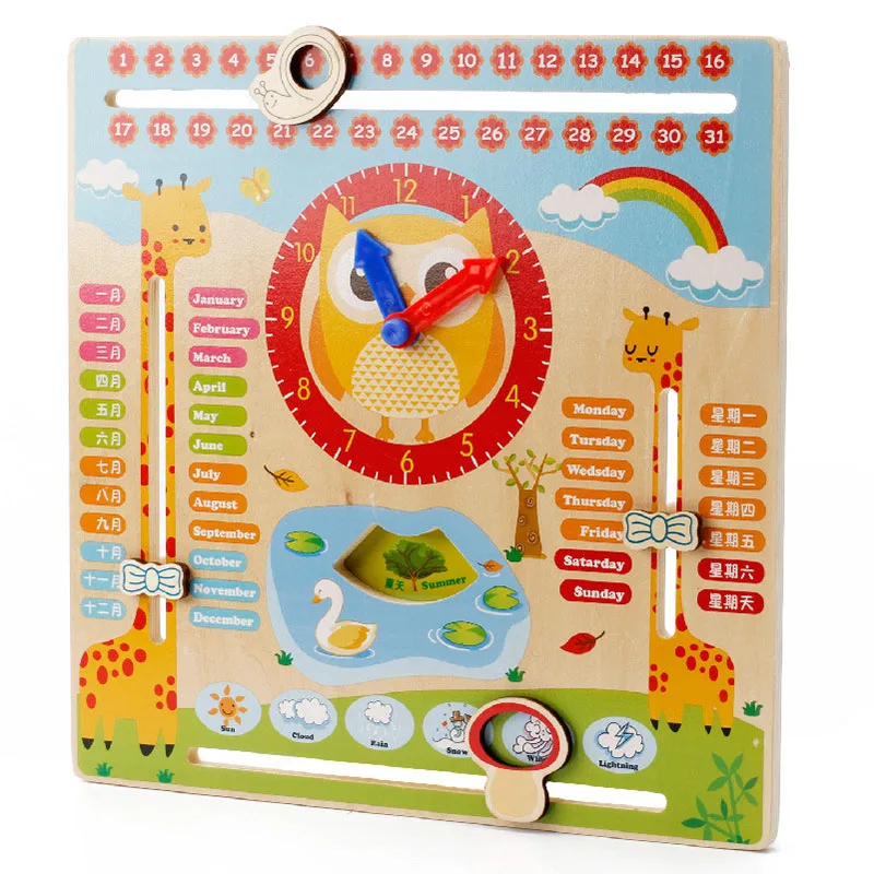 Educational Wooden Clock Toy Baby Date Calendar Chart Preschool Learning Props Develop Kid Colors Recognition Clock TimeBuy Now On Aliexpress
