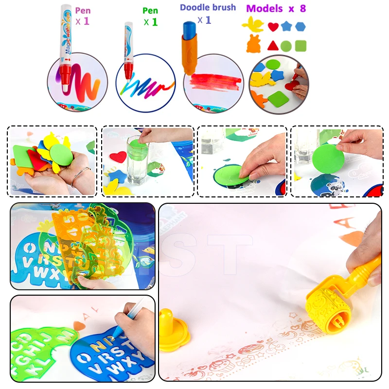 | Big Size Aqua Magic Water Drawing Mat Coloring Set Magic Pens & Stamp Set Painting Toys Drawing Board Educational Toys For Kids |