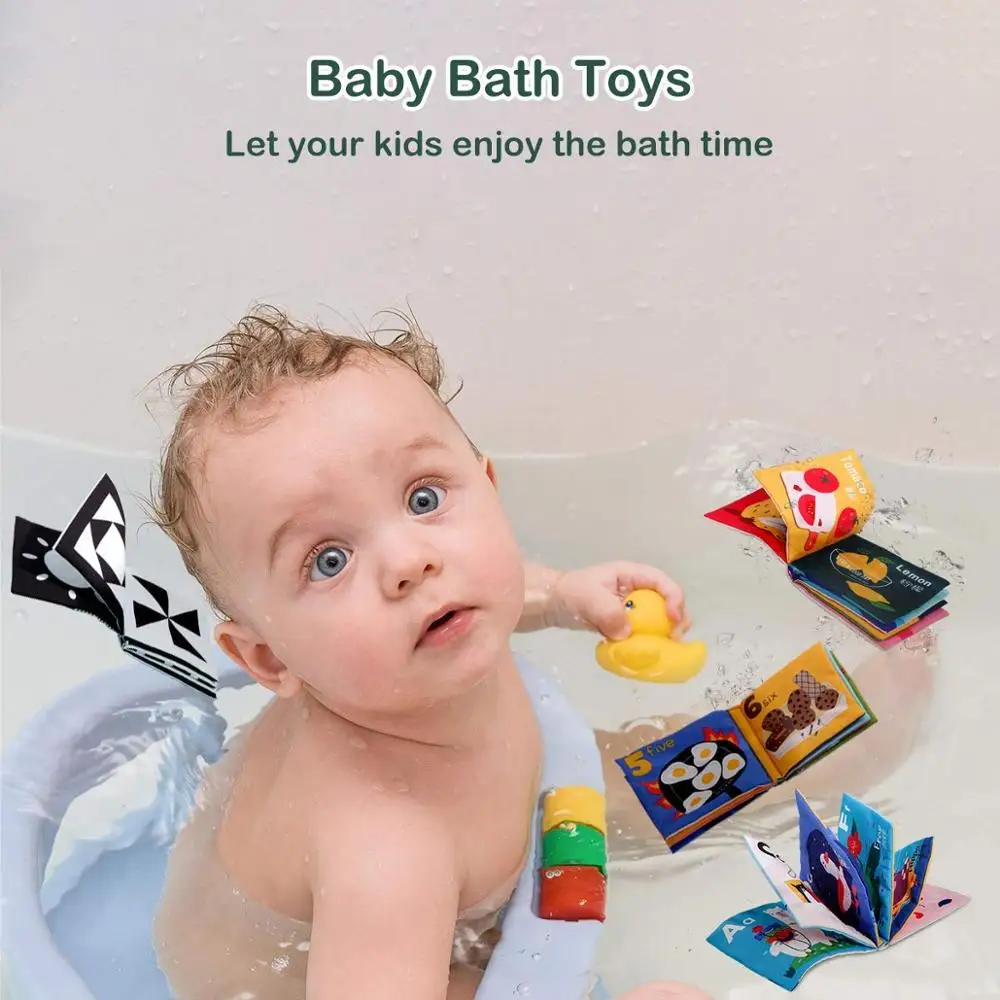Beiens Baby Books 6PCS Black White Cloth Book for Early Educational Toys Soft Quiet Book Bath Toy Kids Learning Montessori