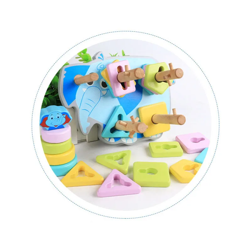 | Children Montessori wooden Toys 4 set columns 2 in 1 cartoon elephant shape Cognition early education educational toys |