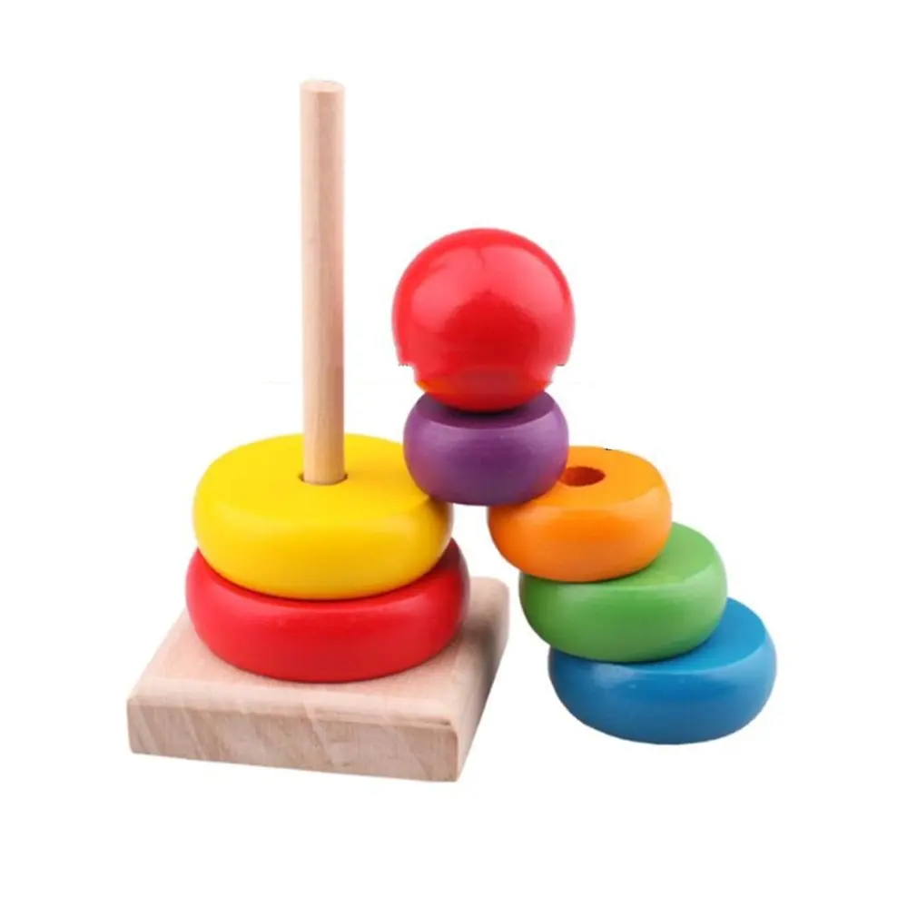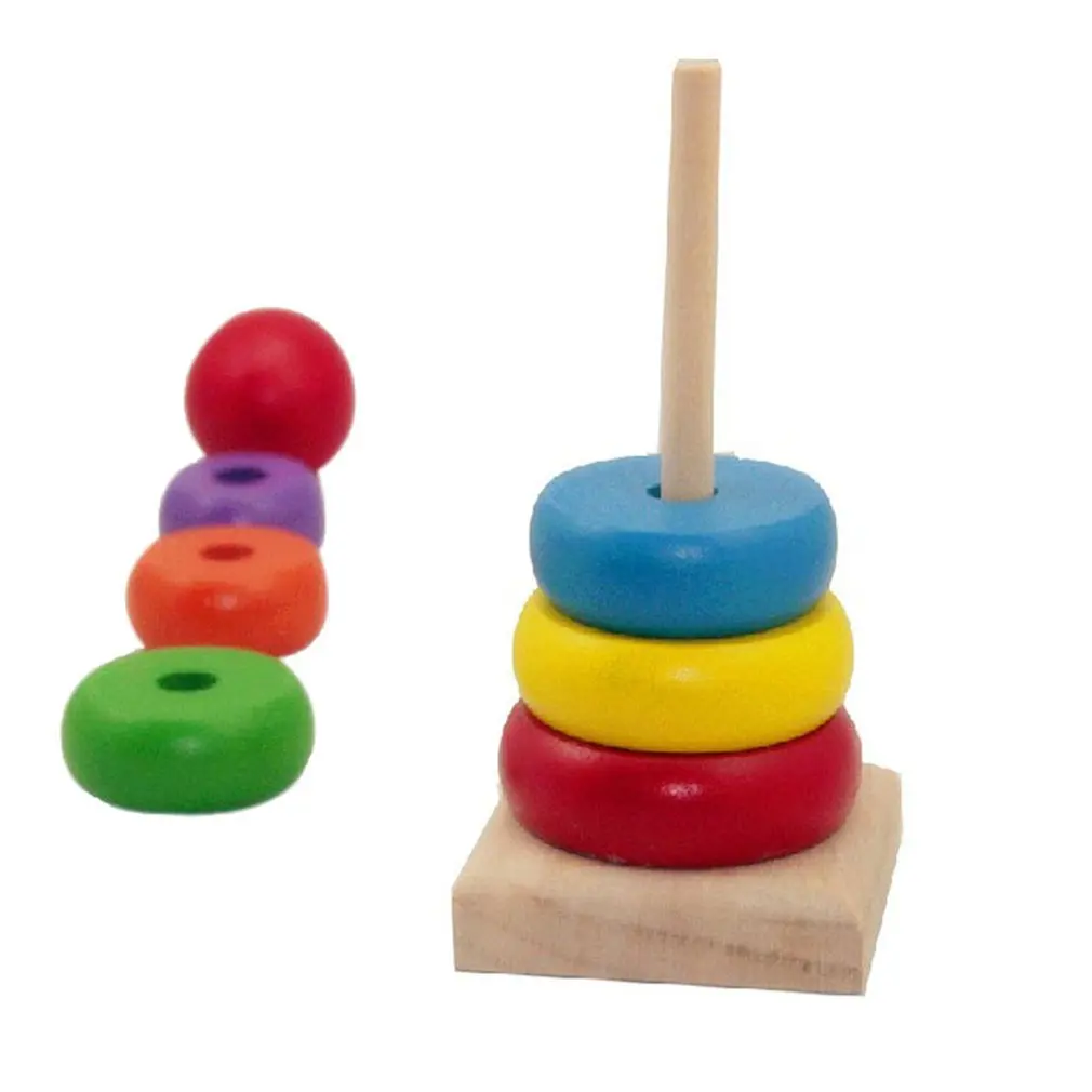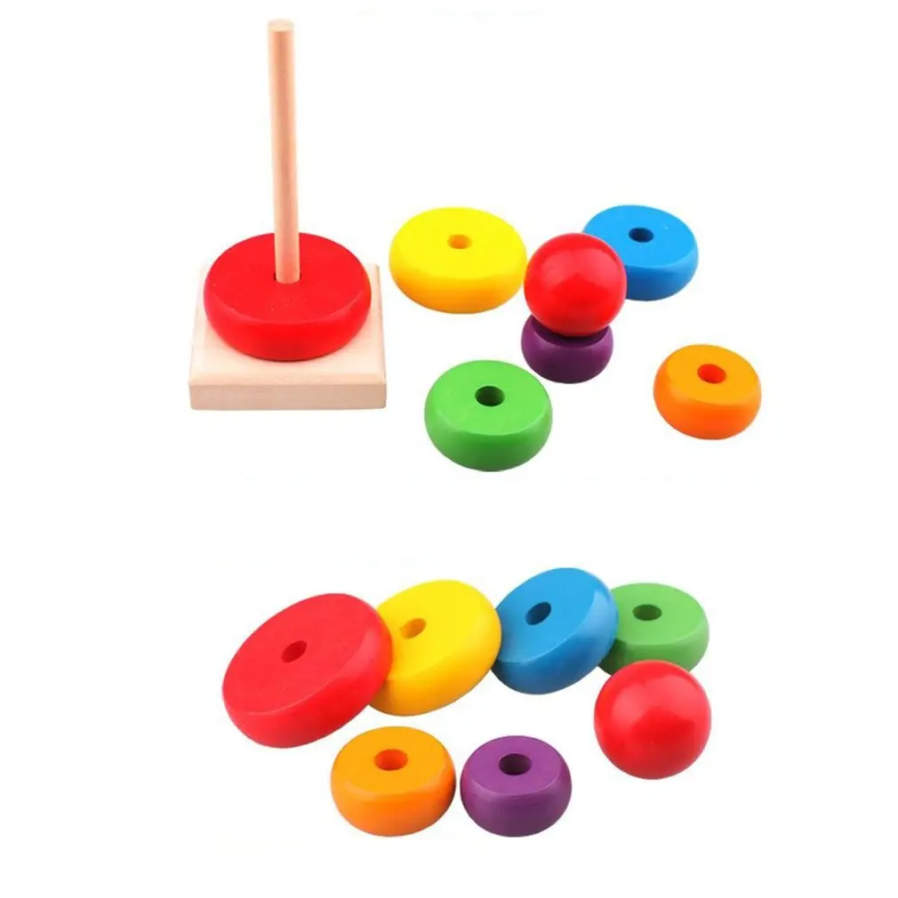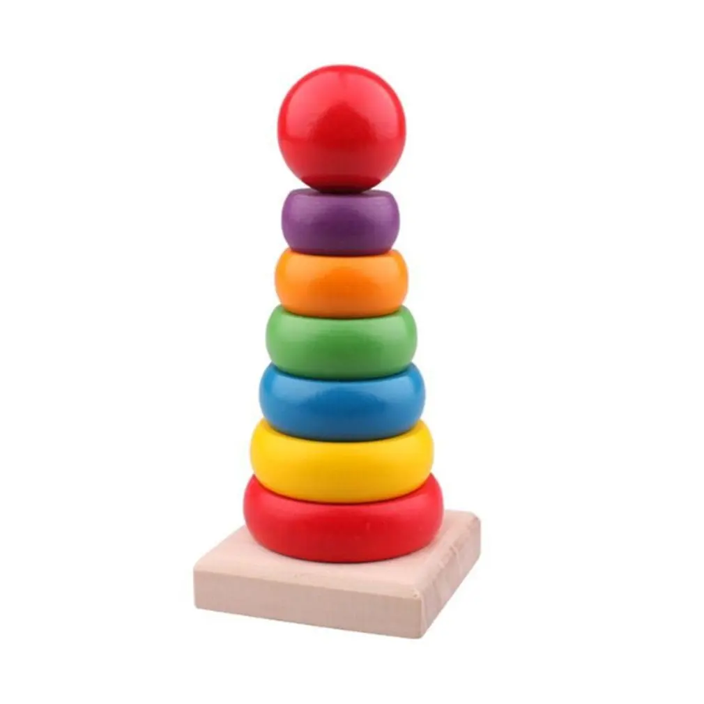 | 1 Set Wooden Stacking Ring Educational Early Learning Toys Rainbow Cute Tower Stack Up Nesting For Kids Children Baby |